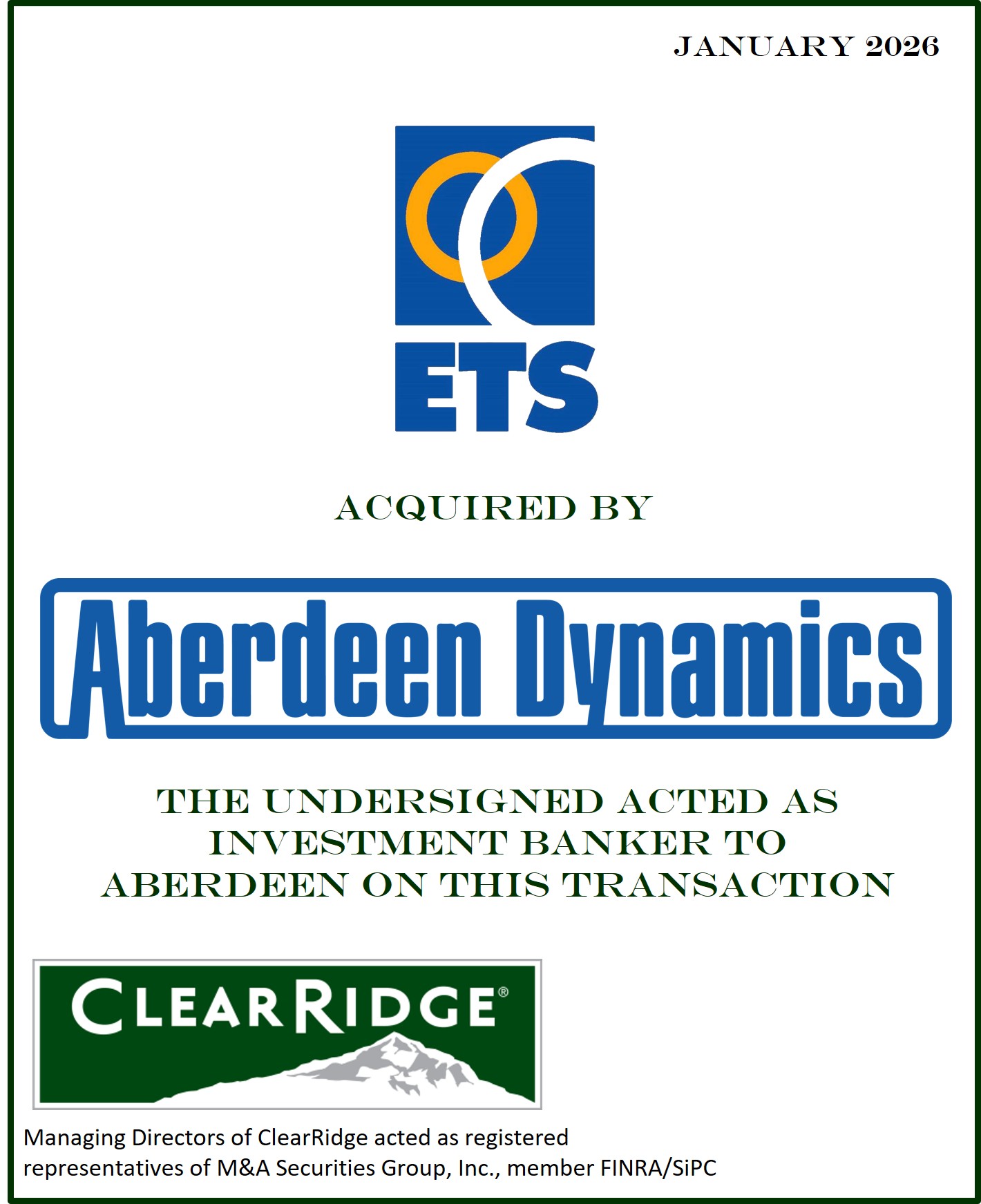 ClearRidge serves as Aberdeen’s M&A transaction advisor.